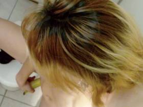 Ich war plötzlich so geil, dass ich die nächst beste öffentliche Toilette aufsuchen musste um ungestört an mir rumspielen zu können. Zum Glück hatte meine Freundin nicht nur eine Banane in ihrer Handtasche, sondern auch ihre Videokamera. Leider kam kein Kerl vorbei. So musste ich dann doch mit der Banane spielen.