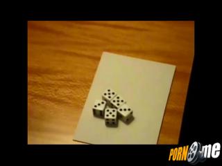 Da der Sklave die Anordnung den Klistier zu halten nicht befolgt hat (siehe Clip: „Klistier für SM-Akademie mit Test“), wird er nun bestraft und dafür habe ich mir diesmal etwas besondereres ausgedacht; denn der Sklave bekommt einen Würfelbecher von mir und muss würfeln und zwar die Augenzahl, die er mit den 5 Würfeln würfelt, entscheidet über die Anzahl der Schläge. In der ersten Runde nehme ich zum Aufwärmen nur die flache Hand! Bei den beiden nächsten Runden gibt es dann Schläge mit der Peitsche und der Deliquent muss laut mitzählen, wobei er versucht mich zu betrügen….!